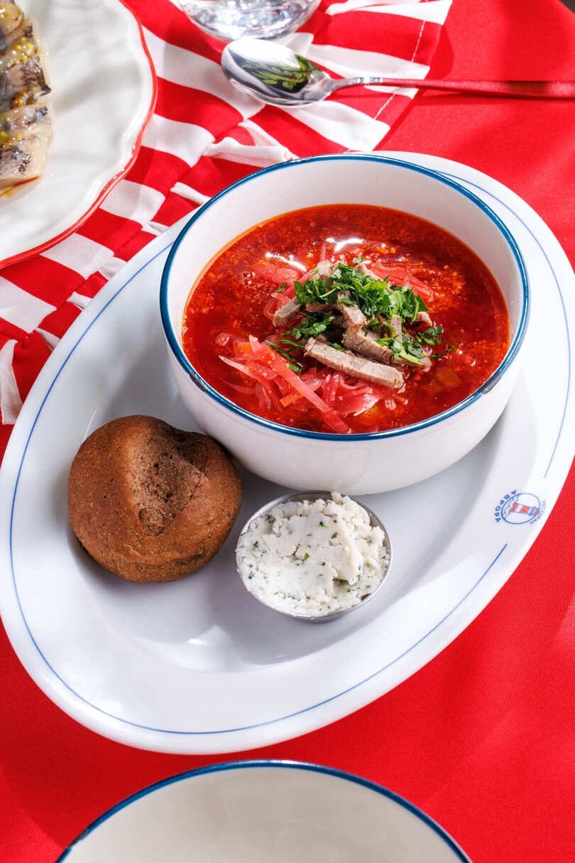 Борщ с салом и сметаной