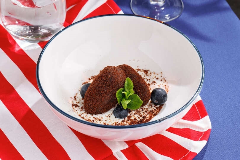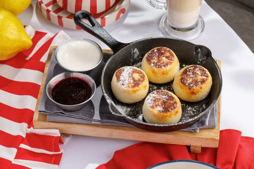 Сыр сулугуни в панировке, варенье из черной смородины