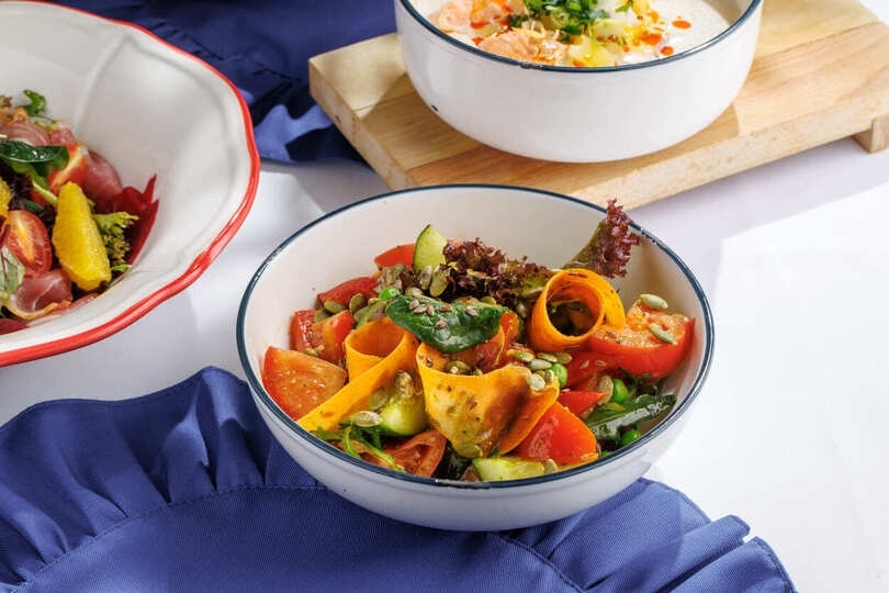 Салат из садовых овощей с заправкой из базилика