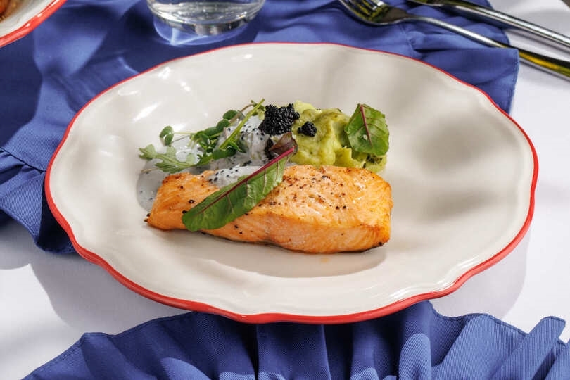 Карельская форель, творожный крем, зелень, чиабатта, свежий огурец, редис