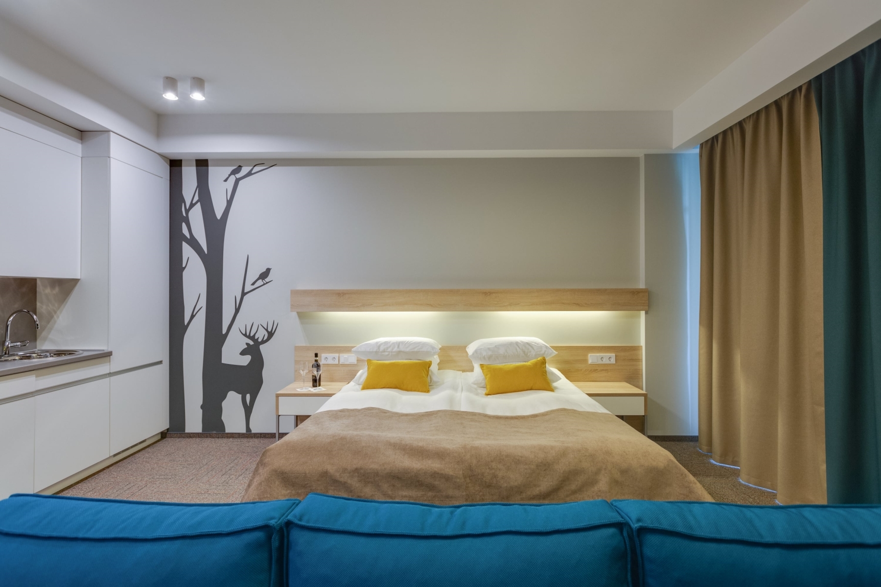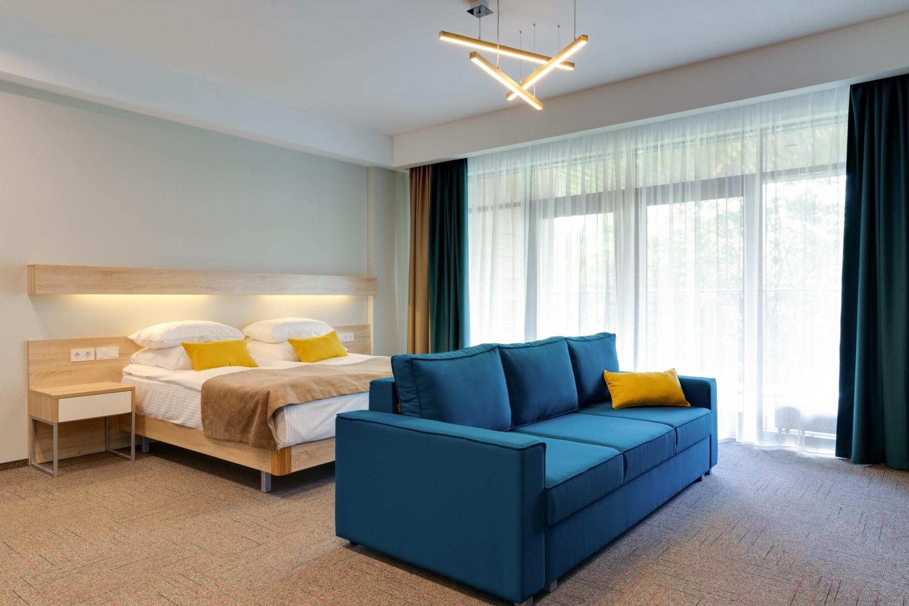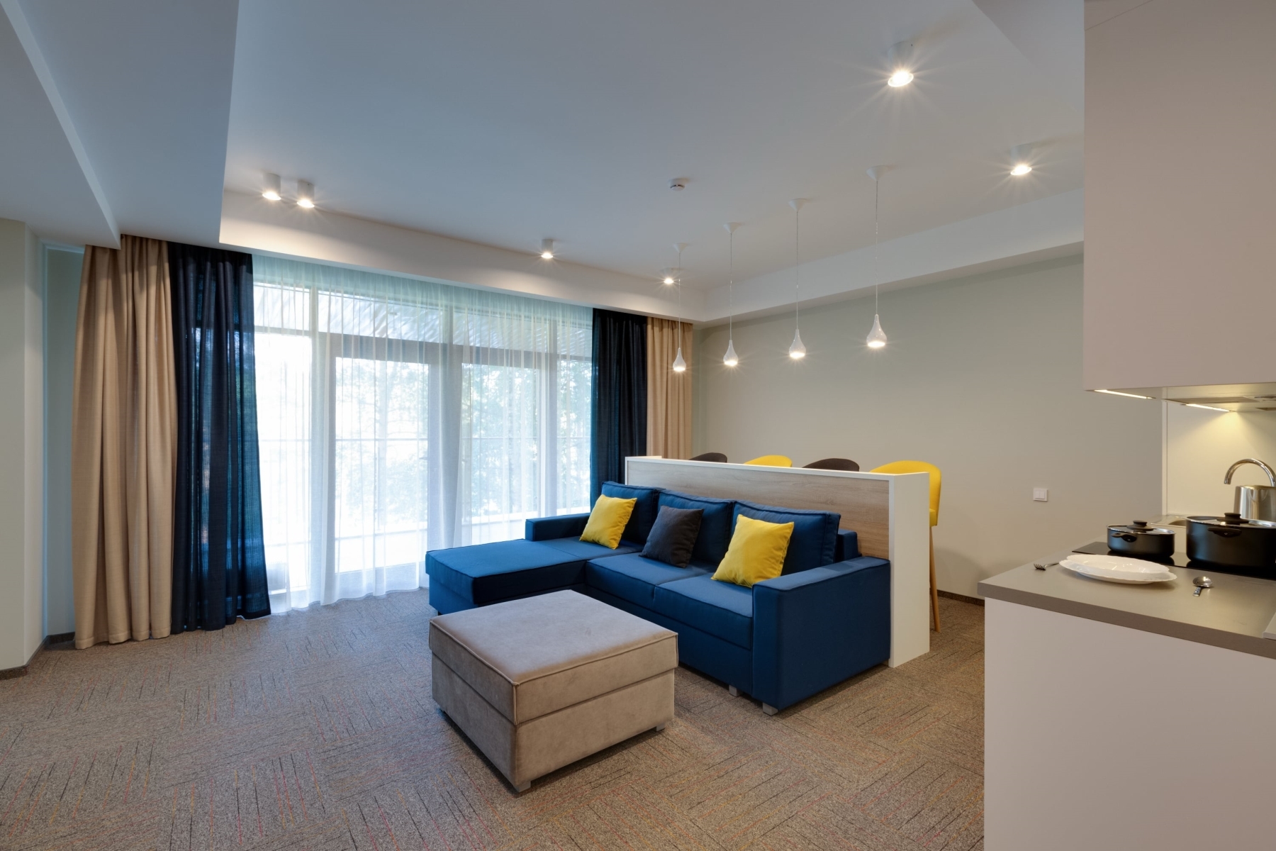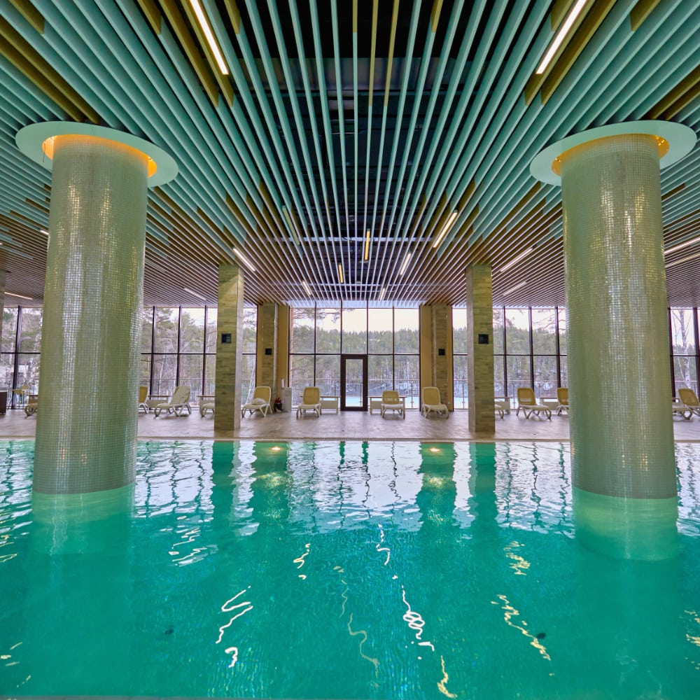 Располагает тремя этажами комфортабельных номеров класса "Студия" и "Апартаменты", с видом на озеро и лес. Все номера укомплектованы кухней. Также в отеле расположены: Лобби-бар, бассейн и кабинет Спа–услуг