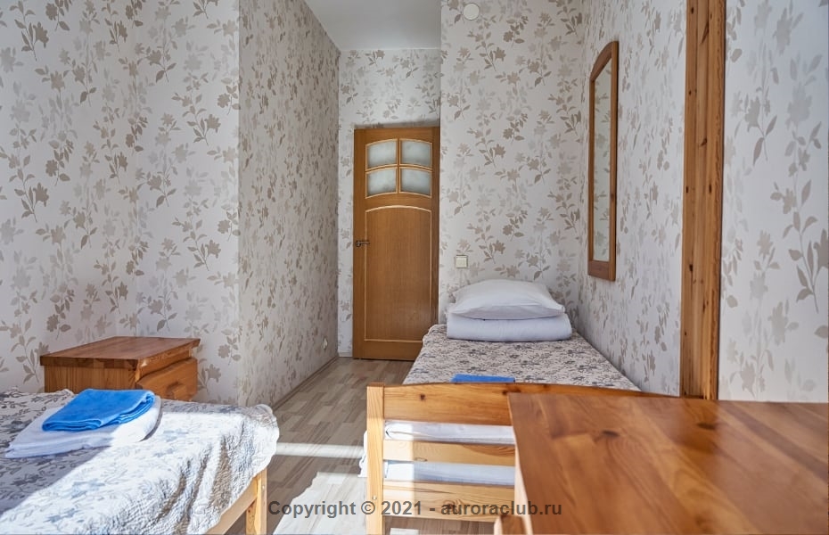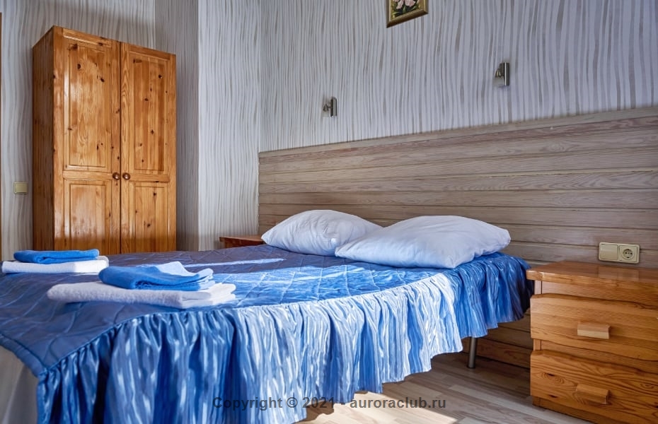 Три изолированные спальни (4 полутороспальные кровати, двуспальная кровать, тумбочки, комод).