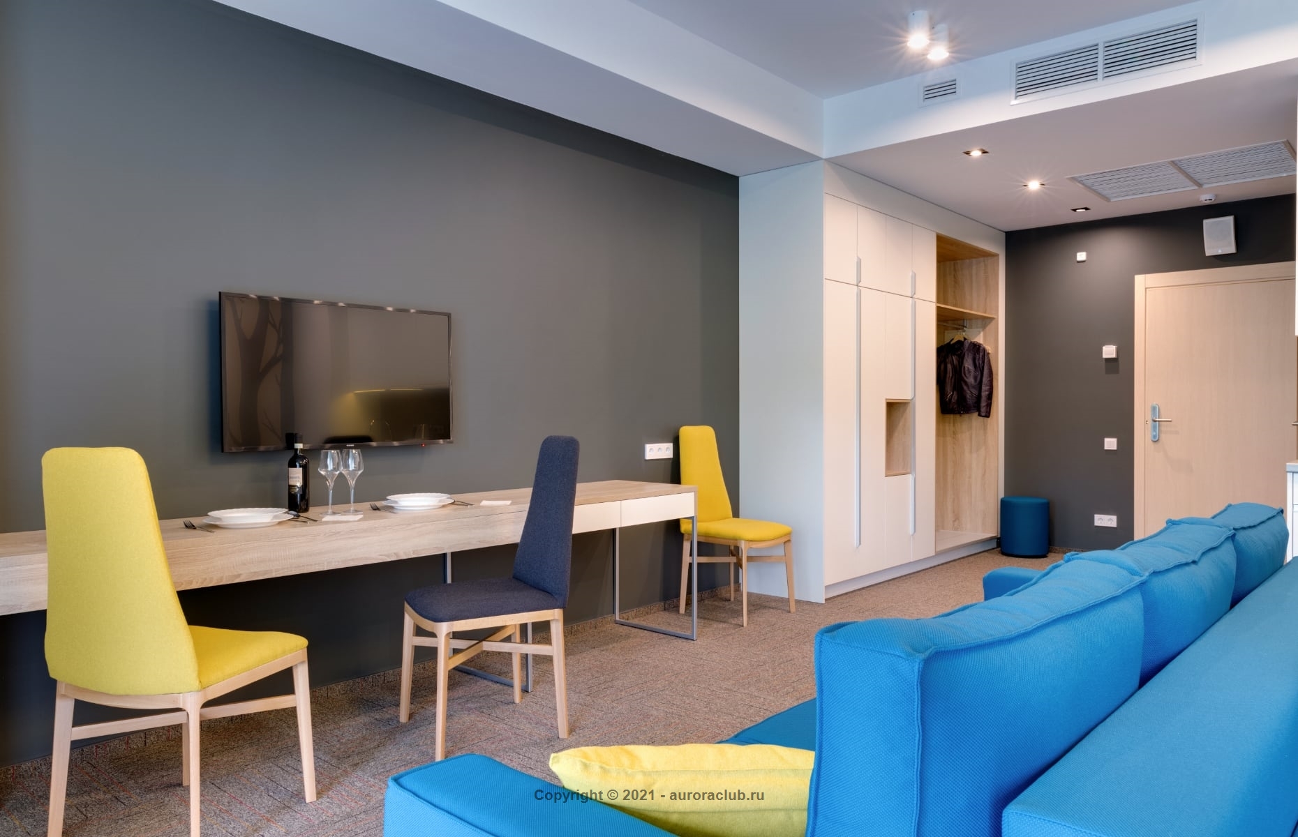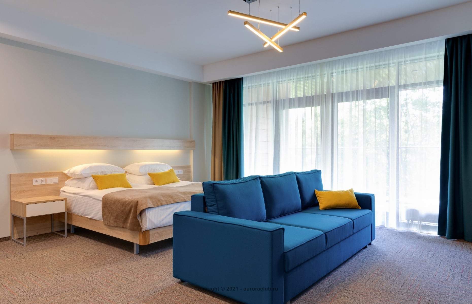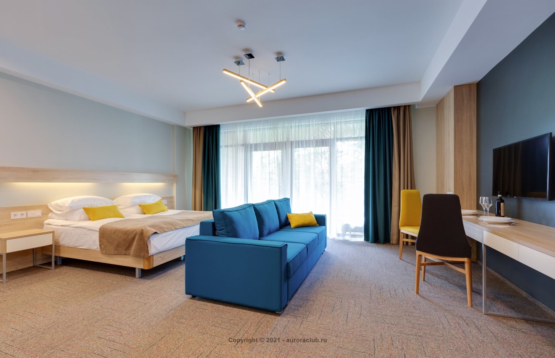 Просторный номер Studio c кухней. Имеются варианты номеров с террасой и без, с видом на озеро и лес. В стоимость включено посещение SPA - зоны и бассейна. Два спальных места: двуспальная кровать и двуспальный диван - кровать.