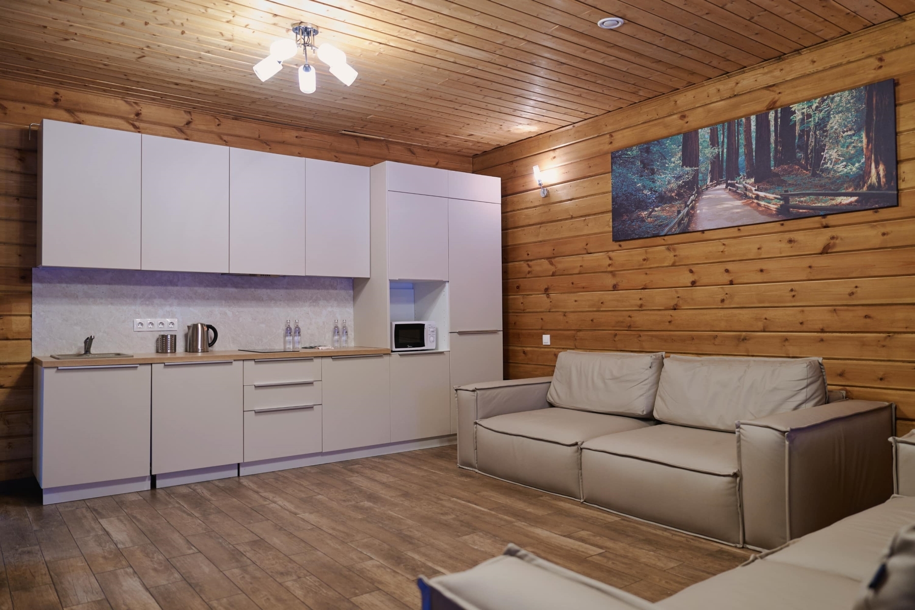 Коттедж с большая гостиной с кухней,