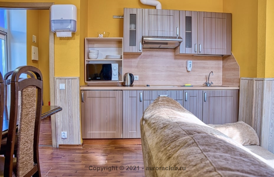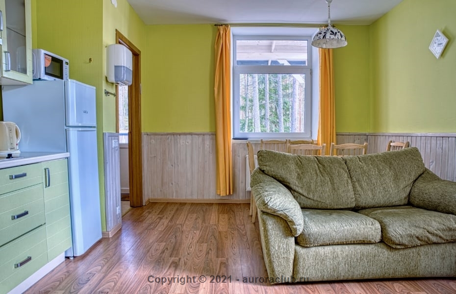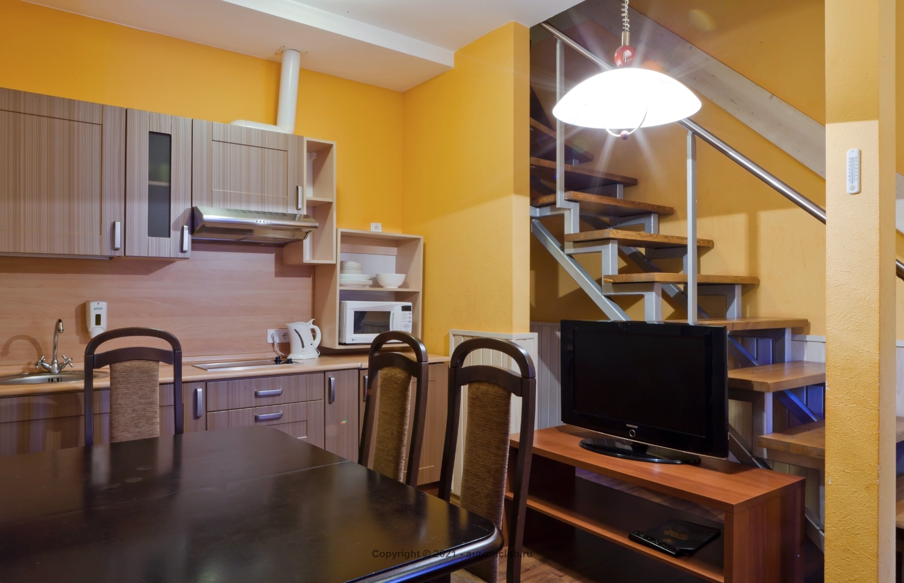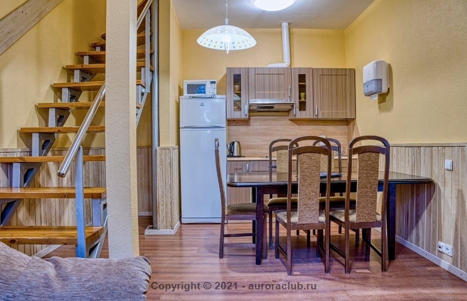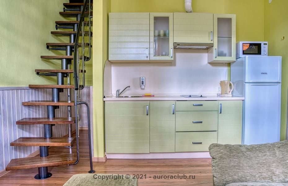 На первом этаже: Мини прихожая, кухня - гостиная.